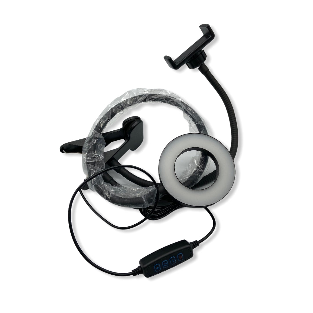 ✨ Aro de luz LED con pinza regulable, brillo ajustable y temperatura de color adaptable para todo tipo de situaciones.