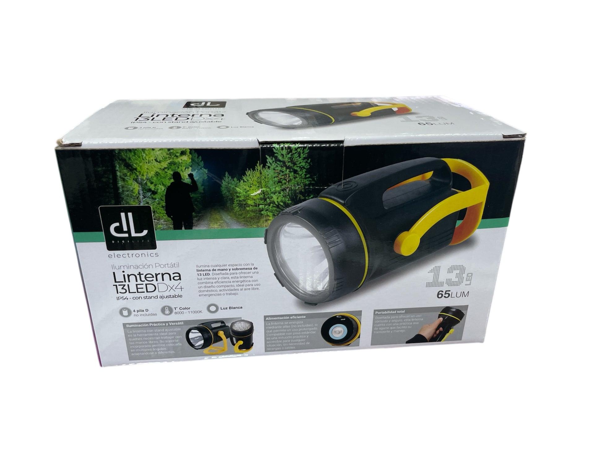 💡 La linterna LED portátil con 13 potentes luces y funcionamiento con 4 pilas D te ofrece una iluminación intensa y duradera.